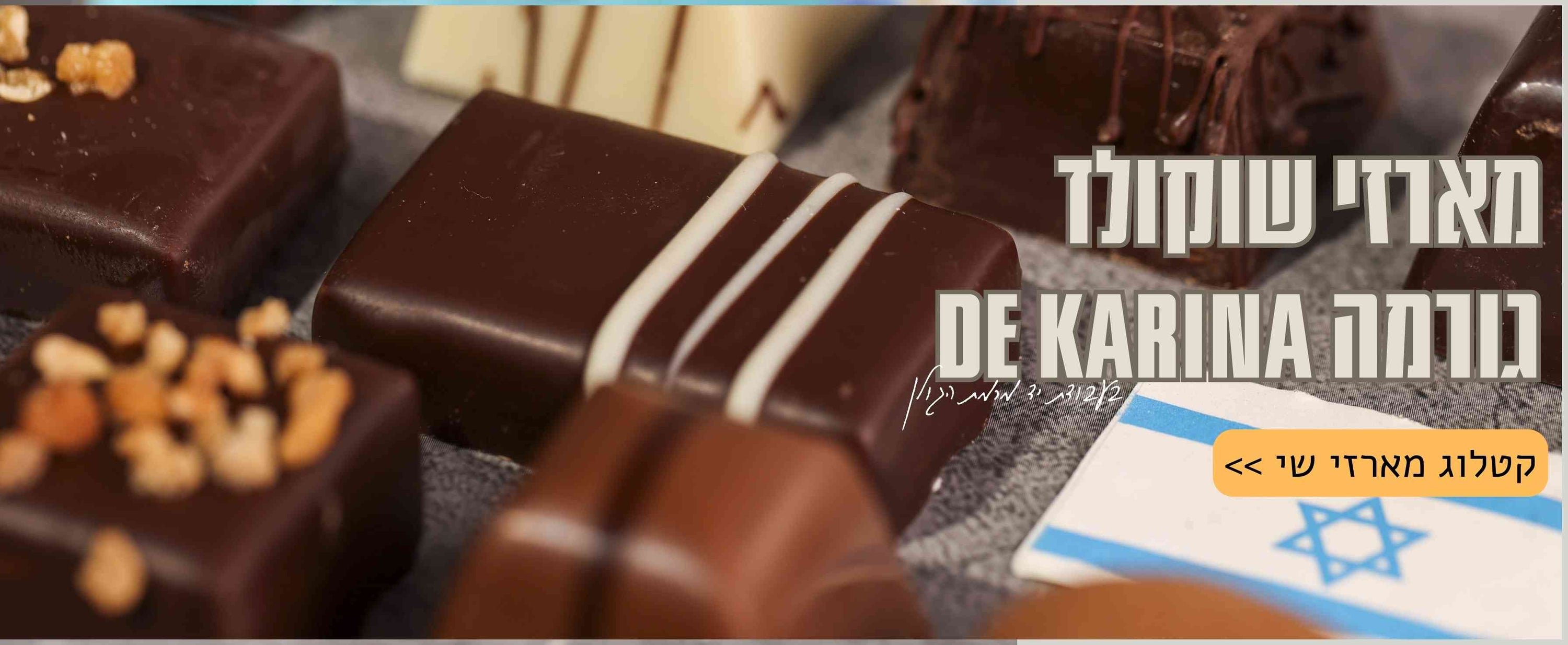 את השוקולדים המיוחדים של DE KARINA אנחנו יוצרים עבורכם בהמון אהבה, ממתכונים אירופאים קלאסיים לשוקולד איכותי – אותם ירשתי מסבא, ובשילוב הלהט הדרום אמריקאי שהוסיף להם אבא. אנחנו יוצרים אותם כאן, שוקולד איכותי ישראלי, כחול לבן בעין זיוון שברמת הגולן, ביד אמן, עם מעל 100 שנות מוניטין, ושני תארים אקדמיים, אני משלבת את שיטות העבודה המסורתיות עם מחקרים ופיתוח חדשניים, כדי להציע לכם שוקולד בוטיק מדהים ואיכותי, המכיל מינימום חומרים מתועשים, ומקסימום הנאה ומרכיבים טבעיים. תטעמו, תבינו. קרינה ❤️